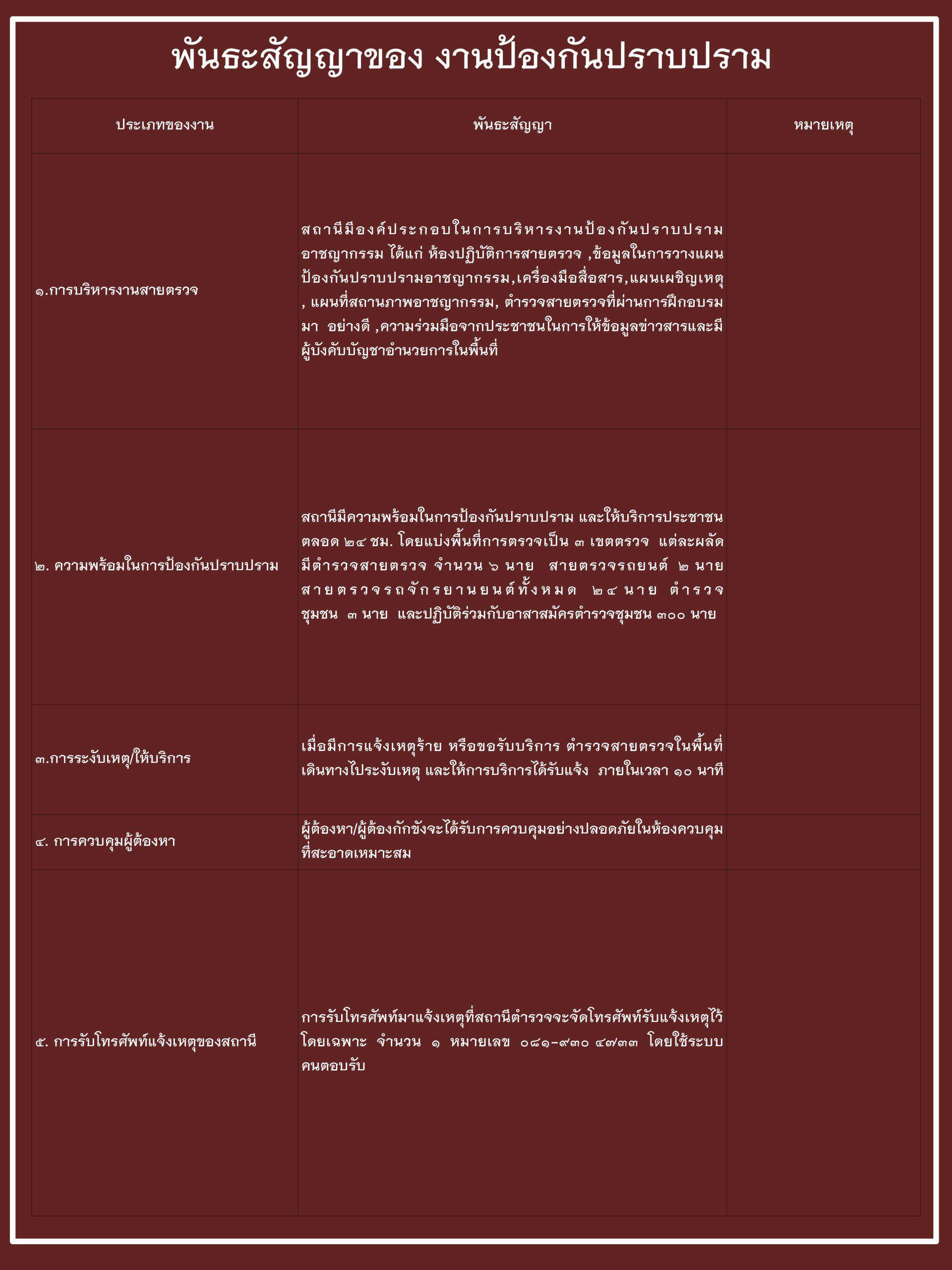 O8 คู่มือการปฏิบัติงานสำหรับเจ้าหน้าที่ คลิ๊กดูคู่มืองานป้องกันปราบปราม คลิ๊กดูคู่มืองานอำนวยการ คลิ๊กดูคู่มืองานสอบสวน คลิ๊กดูคู่มืองานจราจร FacebookFacebookXXLINELine